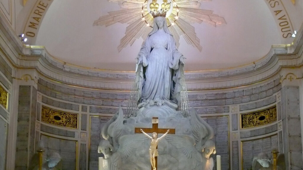 이 성당에는 성 빈첸시오 동상과 성모님께서 1830년 7월 18일, 11월 27일, 12월 말 까리따스 수녀원의 카타리나 수녀에게 발현한 장면의 조각이 있다. 이 조각에 있는 성모님의 머리에는 별이 그려져 있다. 그리고 성모님께서는 우리에게 메달을 착용할 것을 말씀하셨는데, 이 메달의 착용으로 많은 기적과 치유가 있었다. 그 이후 교황님의 인준을 받았다. 그리고 이 성당에는 성녀 카타리나의 유해가 남아있다.